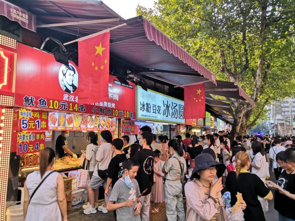 无论是本地市民还是外地游客,江汉路都是一个“十一”出行必不可少的目的地。商场、超市、美食、娱乐、网红店、小吃一条街等,江汉路集齐了汇集人气的N种元素。尽管此处开了4家茶颜悦色,但从排队点单到取杯仍然需要等待约半小时,隔壁家的鲍师傅也是长队不断,“一次性排两家,也算是时间利用最大化。”和男朋友分开排队的贺小姐说。捧着奶茶走到循礼门附近的mark食集,日式的装修风格更是让许多食客开启了拍照模式,“串串和小丸子一个不少,宿舍4个人分一份,排队更方便,也能吃到更多的种类。”面对着种类众多的美食,国庆放假没回家的大学生小刘和宿舍的小姐妹现场给游客支招。