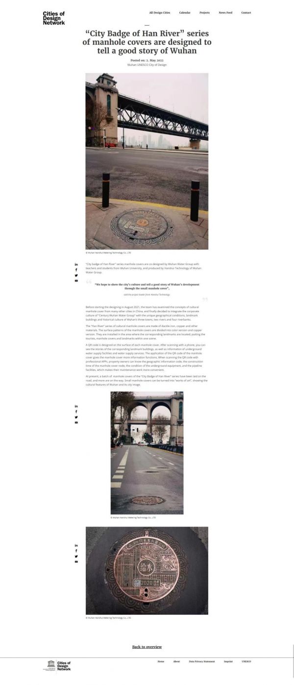 联合国教科文组织“创意城市网络”网站聚焦汉水城文创井盖。