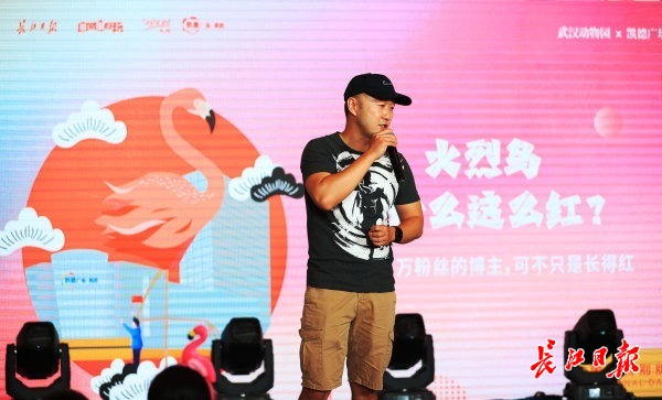 长江日报大武汉客户端10月3日讯 3日,移动动物园国庆特别版走进武胜路凯德广场,武汉动物园科普专员彭少波刷新大家对火烈鸟的认知,揭开它毛色的秘密,还邀请孩子们模仿火烈鸟走路的姿势,来了一场T台秀。