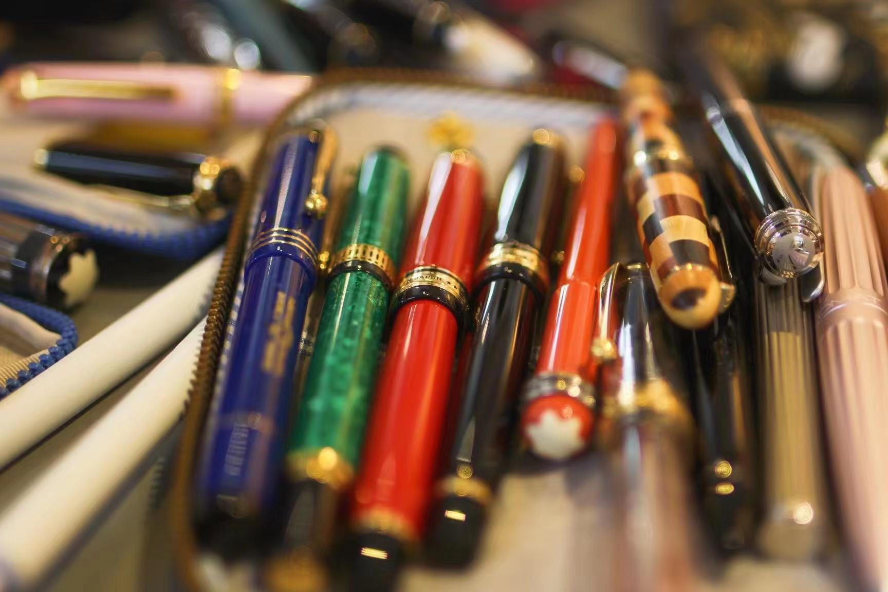 群友们收藏的钢笔。朱女士摄
