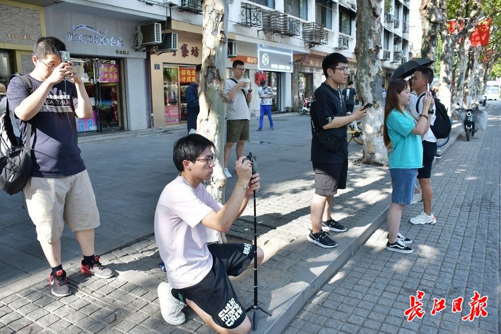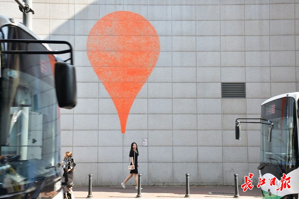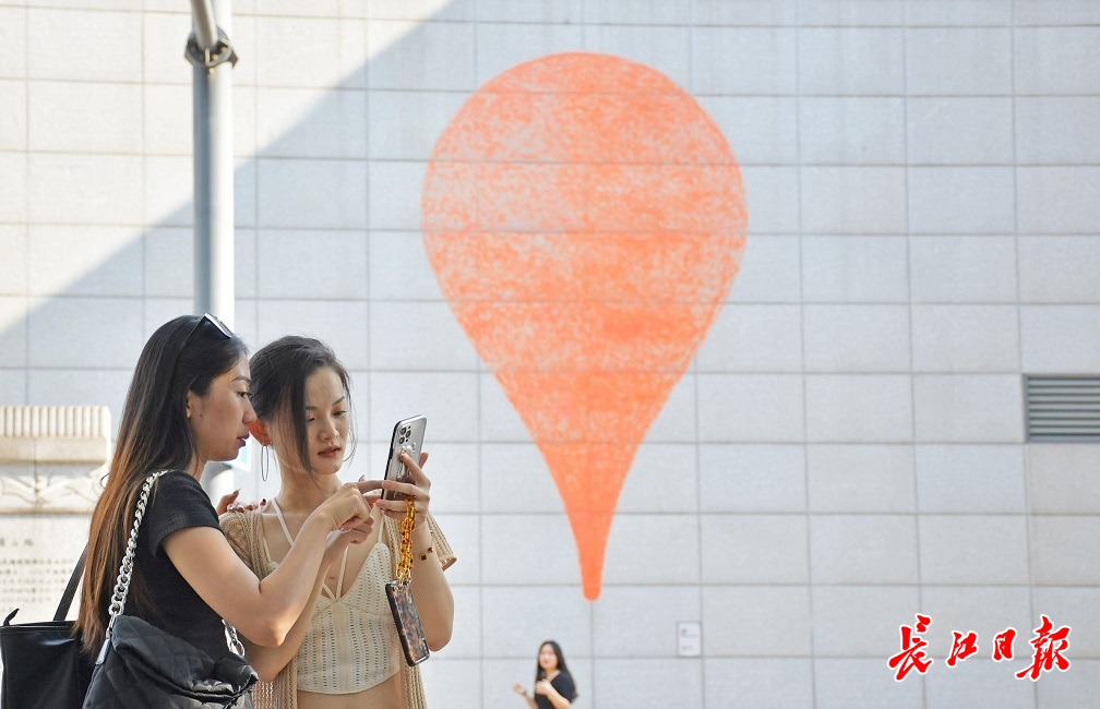 长江日报大武汉客户端10月4日讯 10月4日,在网上爆火的网红点——武汉美术馆靠近黄石路公交车站一侧墙面上的巨大“网红惊叹号”(实际上是艺术家李郁、刘波的公共艺术作品《地图》),国庆假期每天都迎来不少慕名前来的游客打卡留影。人们在“网红惊叹号”前面走过,留下自己的身影,马路对面的小伙伴忙着用手机或相机记录下来。(长江日报记者詹松 摄影报道)