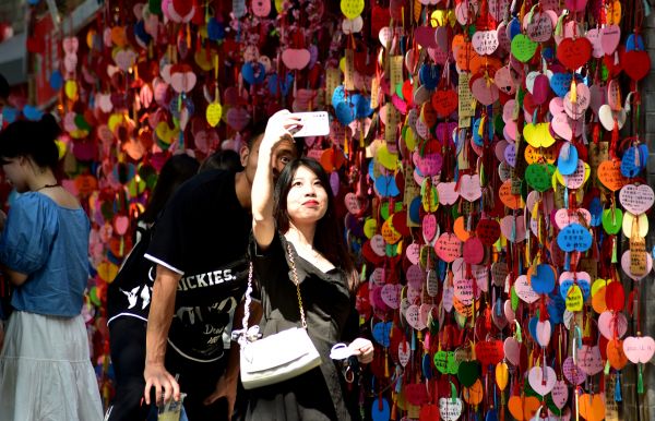 昙华林,游客在许愿墙前拍照。长江日报城市摄影队 金成钢 摄