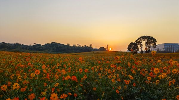 今天清晨6时,摄影师浅阳就早早来到这片花海,她说,节前就知道这片花海开了,担心人多,所以赶早来拍日出,6时到达,6时20分太阳就出来了,“拍到了没有人的花海日出,太美!”