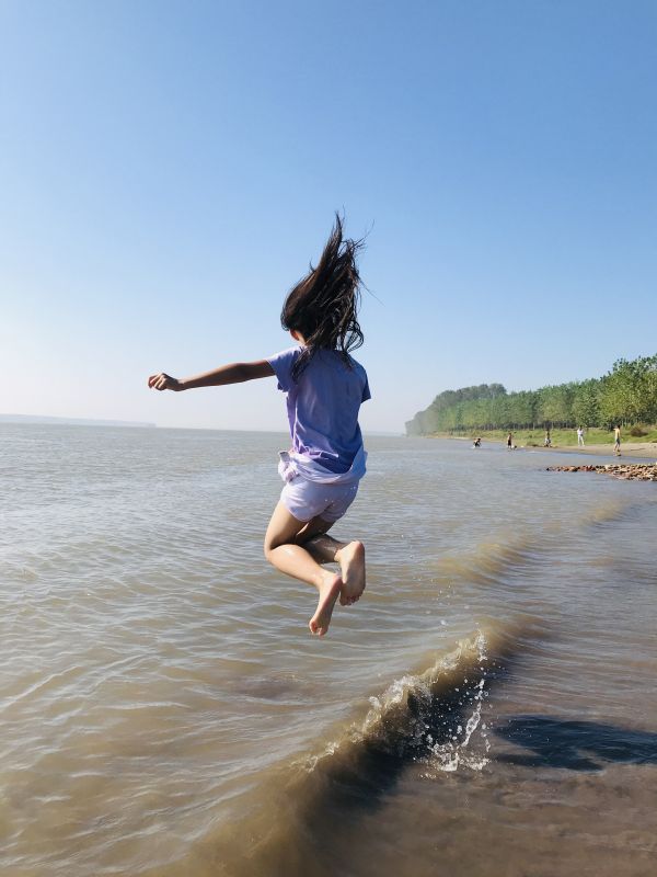 江边玩水的乐趣,孩子在水里蹦跶,家长偷偷在后面拍了一张。长江日报城市摄影队 柠檬的小柚子 摄