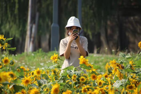 同样,在马鞍山森林公园,大片向日葵盛开,吸引着不少游客拍照留念。