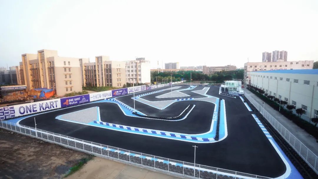“一个卡丁车”占地面积9700平方米,由赛道、户外茶饮区和集装箱主体楼组成。其中赛道全长750米,宽度8-12米,包含13个高低速弯道,是光谷最大、最专业的室外卡丁车场。