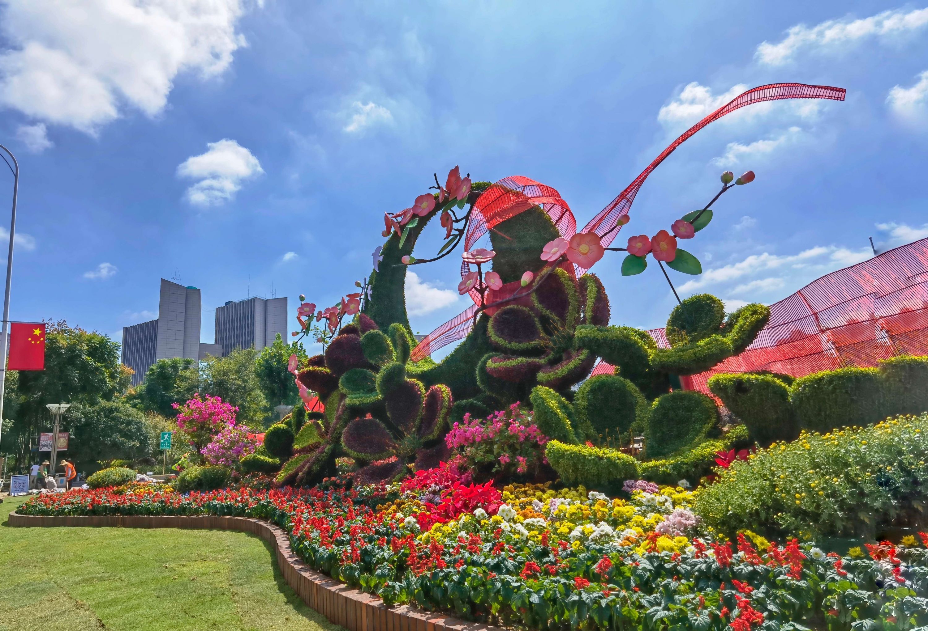网友“解读经典”:“十一”长假来了,武汉三镇街头红旗招展、鲜花怒放,大型花坛装扮完工,经过洪山广场看到路两旁的花坛非常漂亮,留个言点赞!