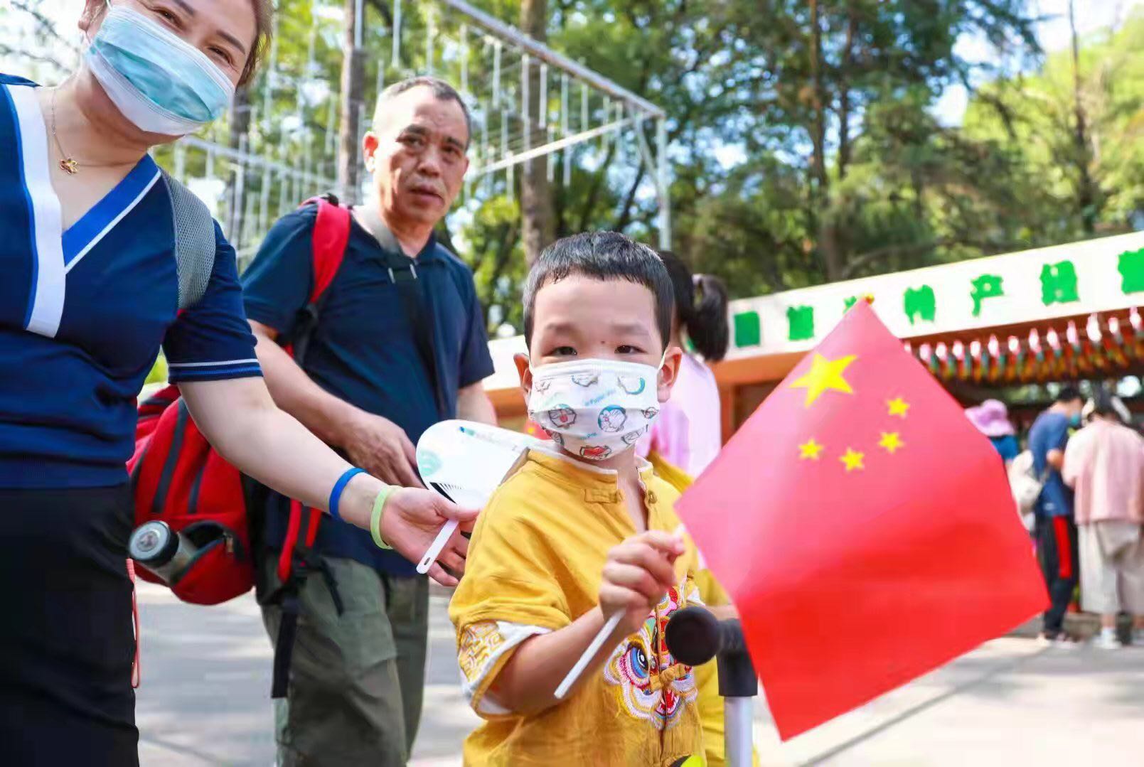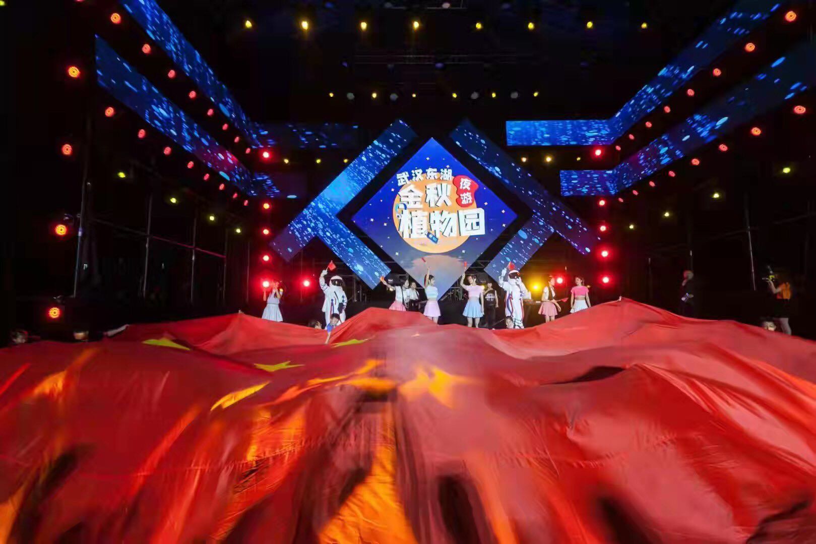 国庆期间,武汉植物园特色活动更是精彩连连。白天,楚剧演员声韵婉转,表现传统文化的内涵;非洲留学生鼓乐激昂,传递对中国的热爱;小朋友拼贴花材,制作植物版生日蛋糕;“宇航员”依次巡游,点燃少年的航天梦。夜间,《我爱你中国》大合唱以质朴旋律表达拳拳深情,纷涌而来的游人自发擎起五星红旗,以连绵红色致敬祖国。