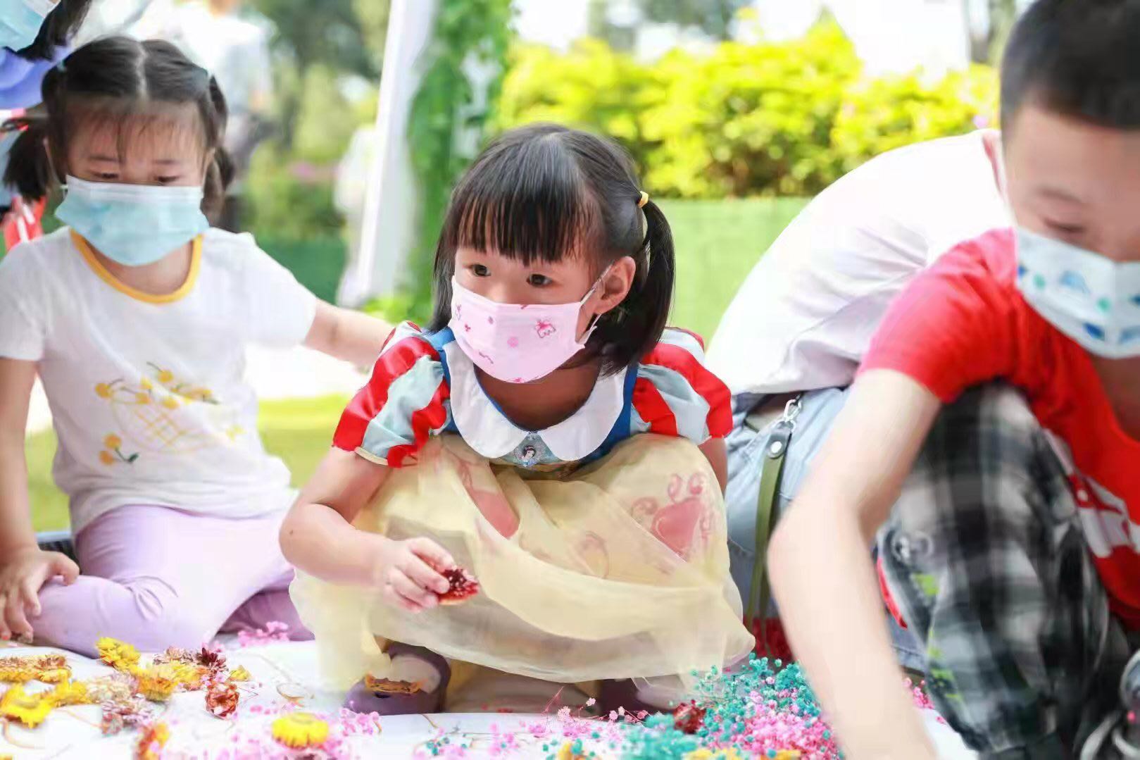 小朋友拼贴花材。李文璇 摄
