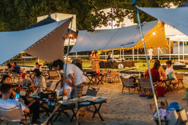 傍晚时分,东湖沙滩升起袅袅炊烟,帐篷上的星星灯璀璨绚烂,诸多游客正在沙滩自助烧烤、拍照打卡。超美的东湖夜色,再加上沙滩帐篷,随手一拍就是大片,氛围感拉满。国庆期间,东湖沙滩接待游客量日均高达3500余人,其中晚间入场游客居多。