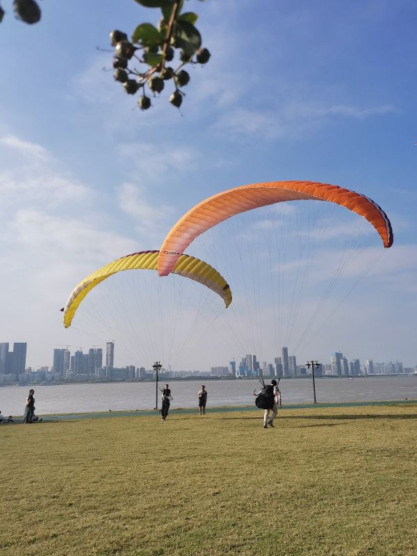 武昌江滩,练习滑翔伞。长江日报城市摄影队 茶青 摄