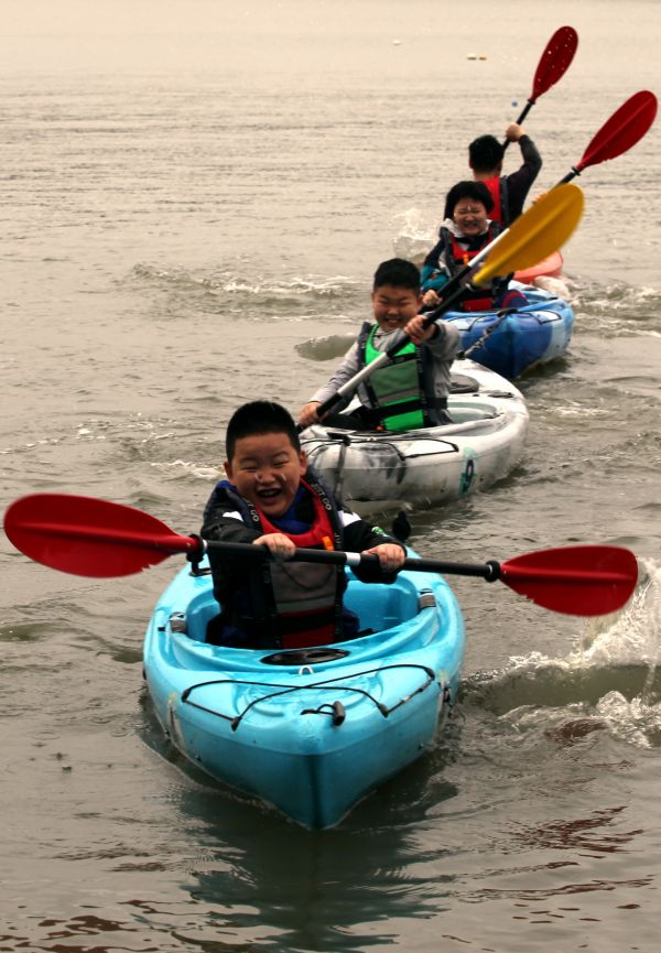 在武汉水上运动学校,孩子们体验了皮划艇这项运动,通过水上“拔河”对抗比赛,他们不仅锻炼了身体和毅力,也增强了战胜困难的勇气。