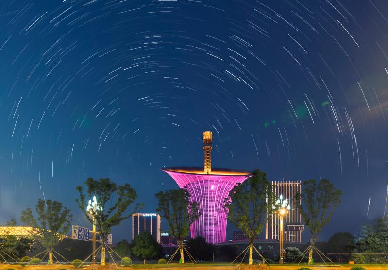 虽然国庆长假结束,但有心的摄影人在这个假期收获了佳作,为拍摄这幅《星轨下的马蹄莲》作品,摄影师“No45阳光”从10月3日的18时30分拍到22时30分,实地实景花了4个小时,实拍了数百张相片,最后制作出了这幅城市星轨片,“看到最后的作品,自己的坚持得到了回报,很开心”。