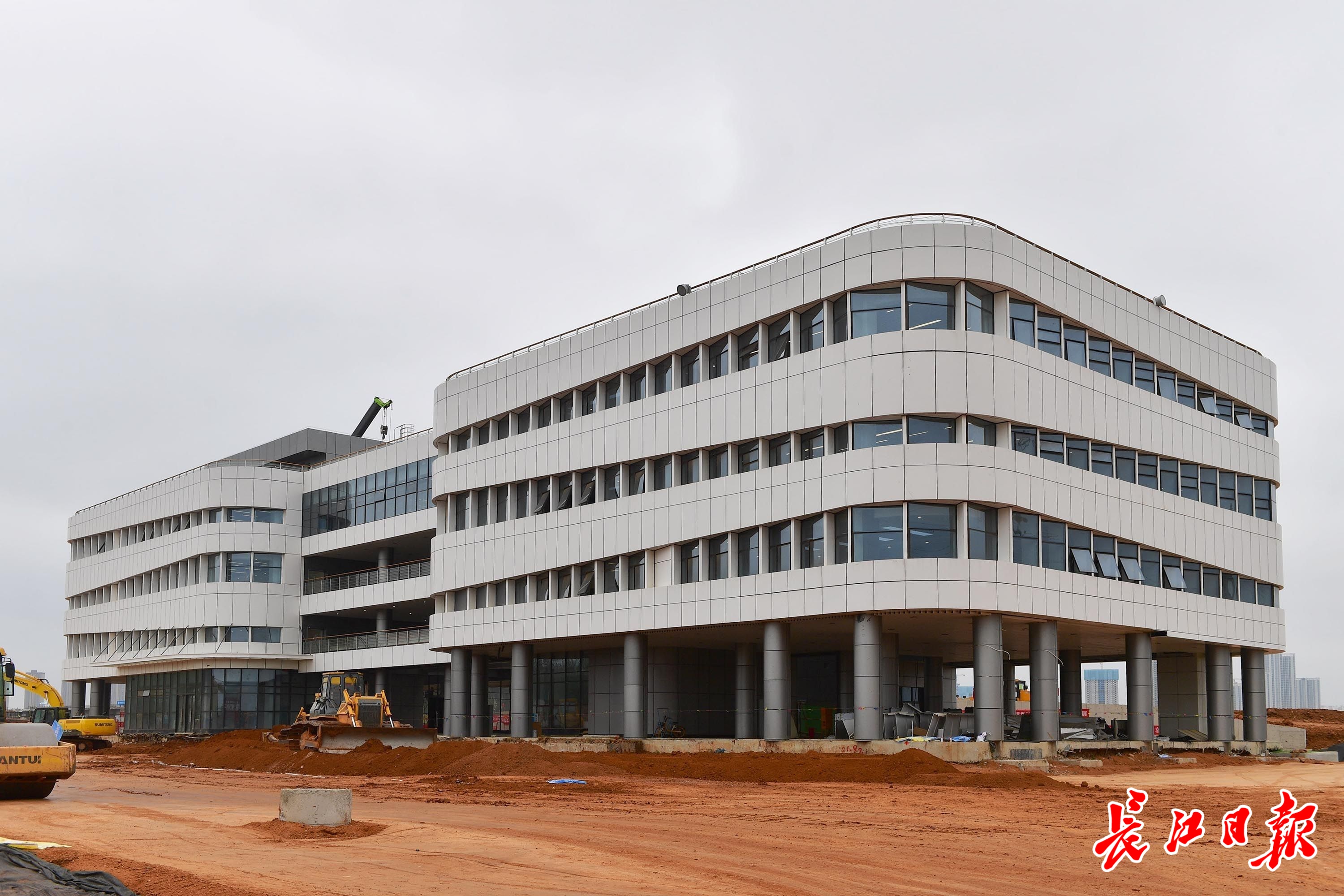 10月7日,武汉智能网联汽车测试场建设工地,办公运营楼已基本建成。记者李永刚 摄