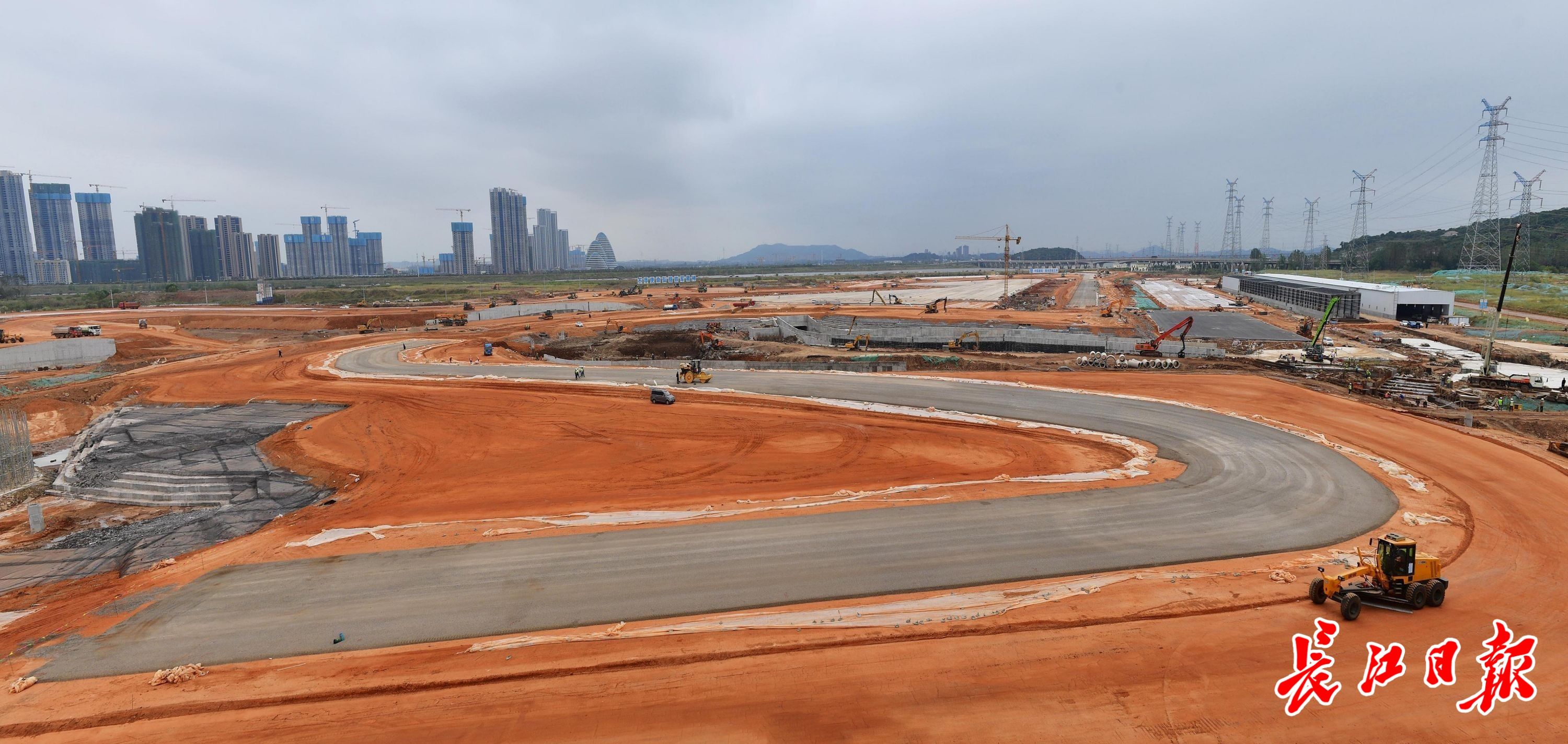 7日,武汉智能网联汽车测试场建设工地,赛车道的一段连续弯道已显露雏形。记者李永刚 摄