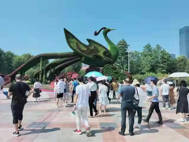 游人参观新地标“楚凤鸟”。市水务局供图
