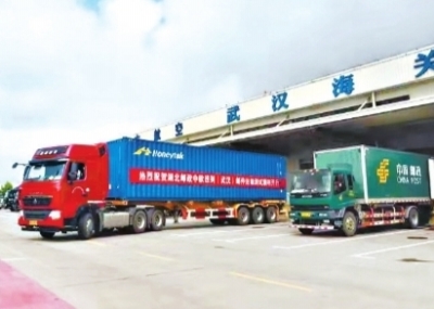 中欧班列(武汉)运邮测试。