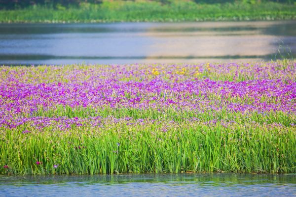 湖泊里的水生植物,总是承担着消纳污染物、净化水环境的重任,鸢尾也不例外。除了春夏之交绽放花海,它一年四季常绿,为鱼虾和鸟类提供着栖息与庇护,也守护着这片湖泊的干净透亮。