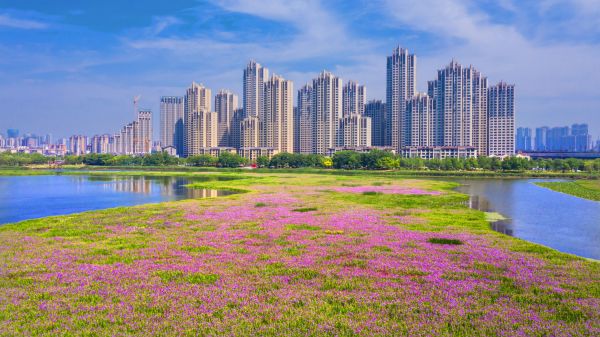 10日,记者来到杨春湖公园,沿着湖中栈道漫步,只见鸢尾花挨挨挤挤,徐徐摇曳开在两旁,花色各异,有蓝色、紫色、白色、黄色……抬头远望,只见大片的鸢尾花海在湖面绽放,一片接一片,将花海连成“花岛”,足足占了公园湖面的三分之一。