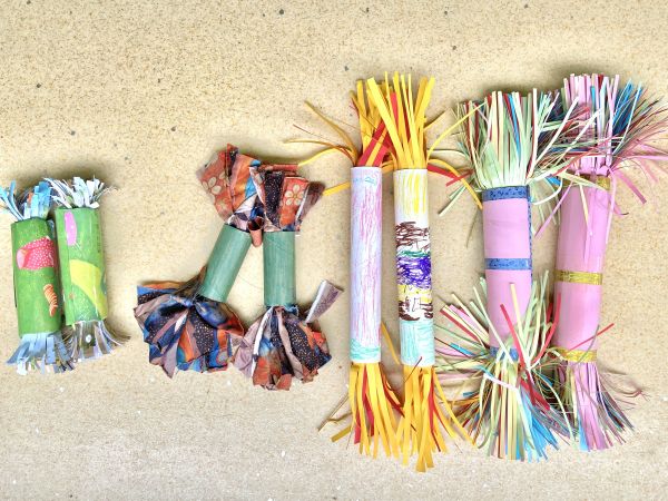 手拿树枝、豆米制成的运动器械做早操,幼儿们开心极了 详见>>