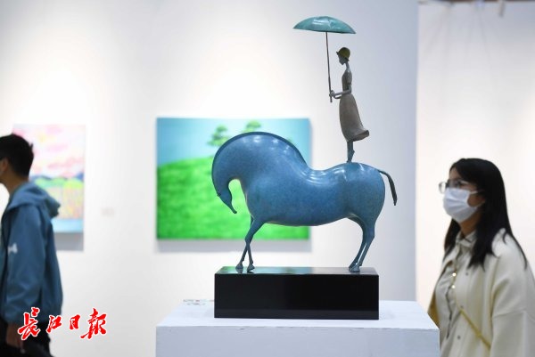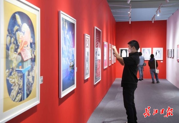 长江日报大武汉客户端10月10日讯 10月10日,武汉国际会展中心,2021第二届大学生艺术博览会(武汉)吸引众多观众前来欣赏青年艺术家作品。
