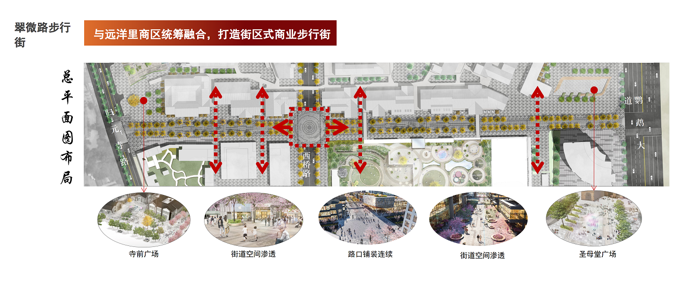 汉阳市政设计院景观专业总工程师黄梁顺介绍,翠微路步行街将与远洋里商区融合,打造街区式商业步行街,通过唤醒圣母堂、圣心堂、绣花堂三座历史保护建筑,重现西大街、汉江故道,还原“横河竖街”城市肌理,开创“荆楚道古今”特色建筑。