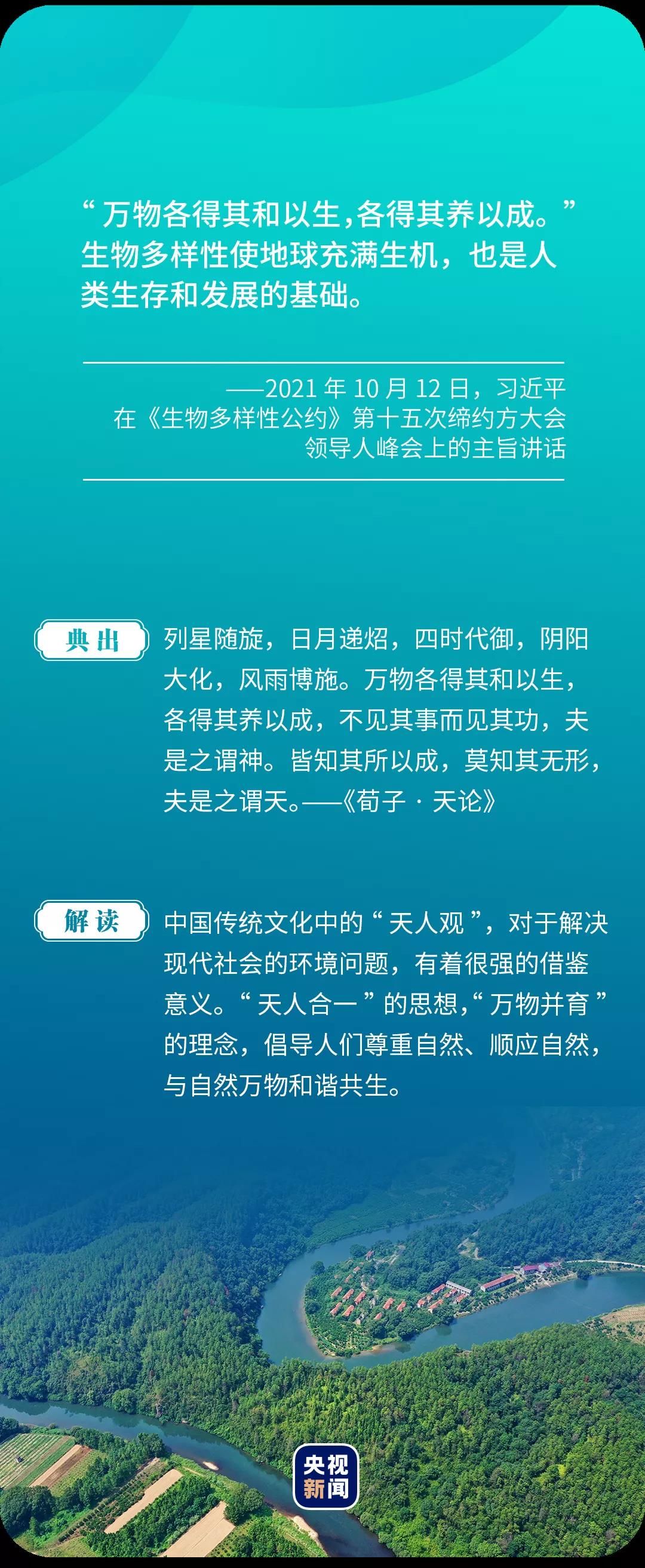 10月12日,习近平主席以视频方式出席在昆明举行的《生物多样性公约》第十五次缔约方大会领导人峰会并发表主旨讲话。在讲话中,习近平引用了这样一句古语,阐释了尊重自然、顺应自然、保护自然的生态文明理念。