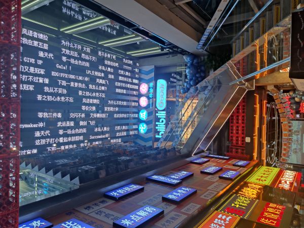 长江日报记者在该店现场看到,一楼就餐区通过纪录片中出现过的店铺招牌、《人生一串》海报墙、天花板上的互动弹幕屏,打造沉浸式体验。二楼则设有观影区、打卡区,全天候播放《人生一串》纪录片,带领顾客进入充满B站元素的“平行宇宙”,更有一系列B站周边供顾客选购。