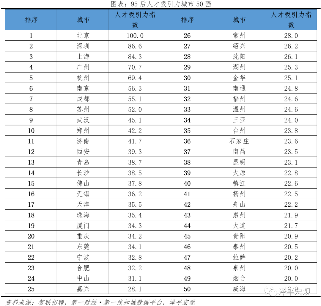 (来源:大刚观察微信公众号 参考资料:泽平宏观《中国城市95后人才吸引力排名:2021——95后人才去哪了?》
