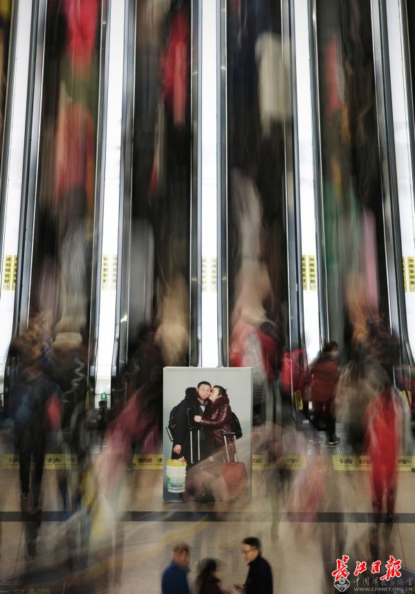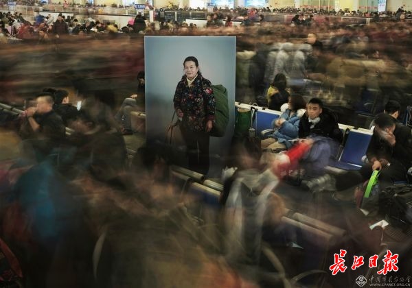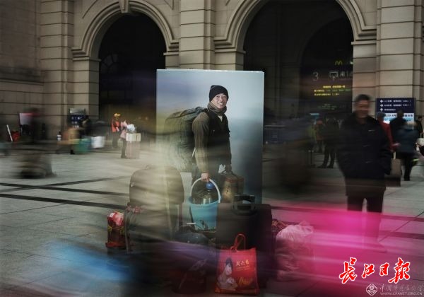 时光荏苒,2019年又是春运,又见滚滚人流,又闻匆匆脚步声。长江日报记者将2018“春运明星”的巨幅照片搬回到汉口火车站现场,融入春运人流中,跨时空与2019年春运同行,伴随归乡人回家过年。