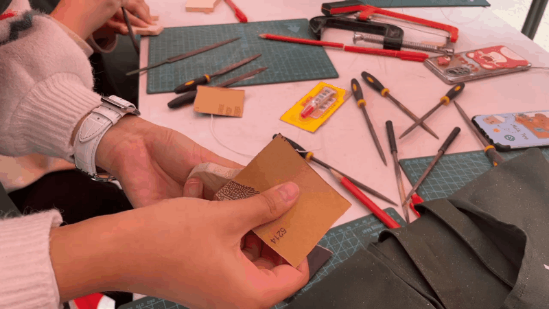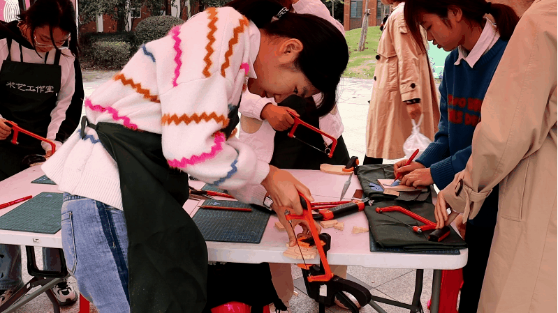 谢钦同学表示,在制作过程中遇到了许多困难,比如打磨时锯子的正确使用方法、木蜡油的用量等。不过中途在老师和助教的帮助下,解决了困难。最后看到自己的手工制品,一份成就感油然而生。