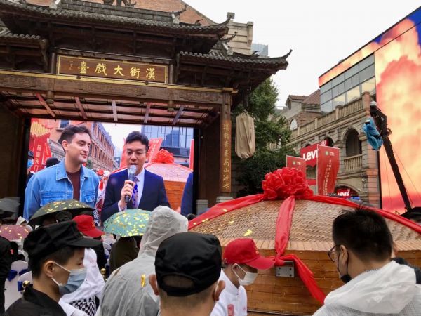 活动现场,“天下第一蒸”在武汉汉街大戏台前开笼,久负盛名的“天门九蒸宴”当场亮相。往年,“天下第一蒸”都是在天门开笼,今年选择在武汉开笼,也是为了让湖北人民、武汉人民近距离品尝到地道的天门蒸菜,一饱口福。菁菁在武汉、木子王其、东东食武汉等网红主播在现场直播带货,模特秀蒸菜、开蒸菜盲盒……汉街来来往往的市民纷纷加入这场美食与文化的狂欢中,不亦乐乎。