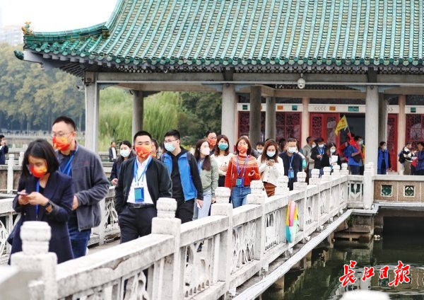 19日,来自中国城市新闻网媒联盟联席会的百名城市网媒总编辑抵达东湖风景区,从车水马龙间瞬间“穿越”到林荫铺路、湖光山色的东湖畔,纷纷表示“体验独特”。中国城市新闻网媒联盟会长胡宝祥说:“城市中心有这么一片大湖,实属稀缺资源,它不仅是旅游观景的好去处,也调节着整座城市的生态品质。”