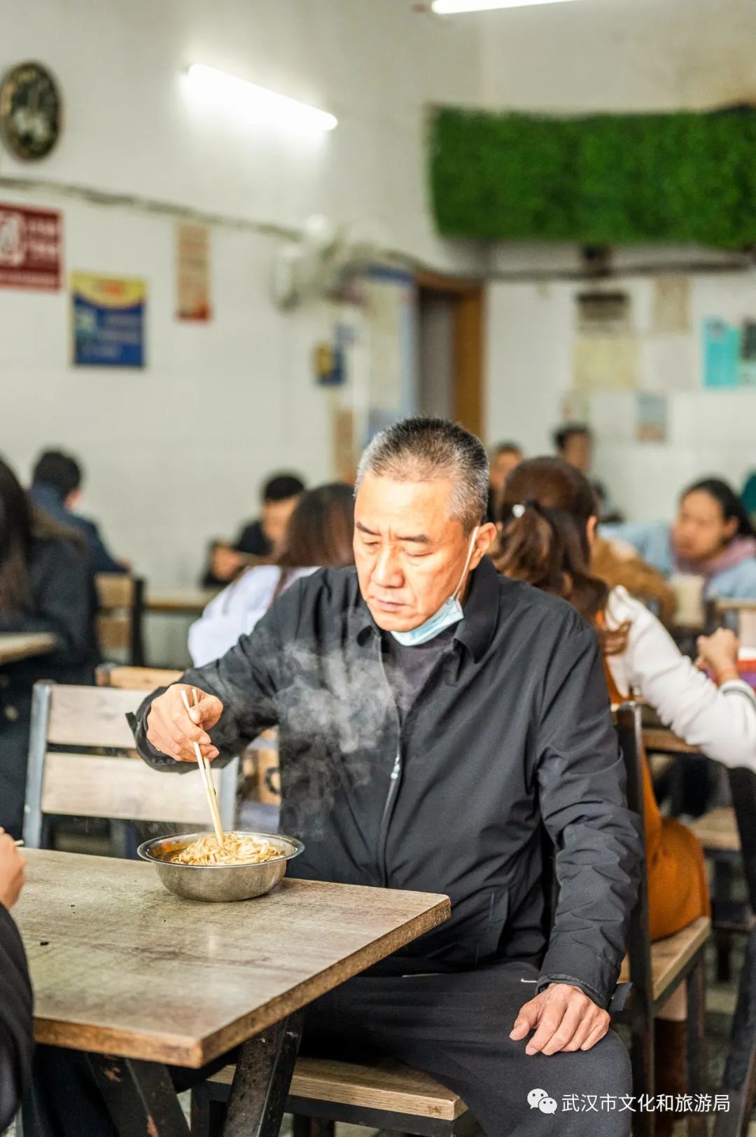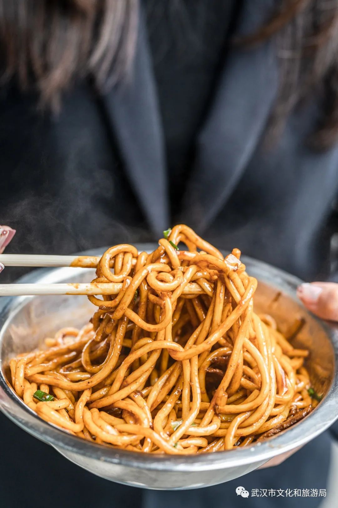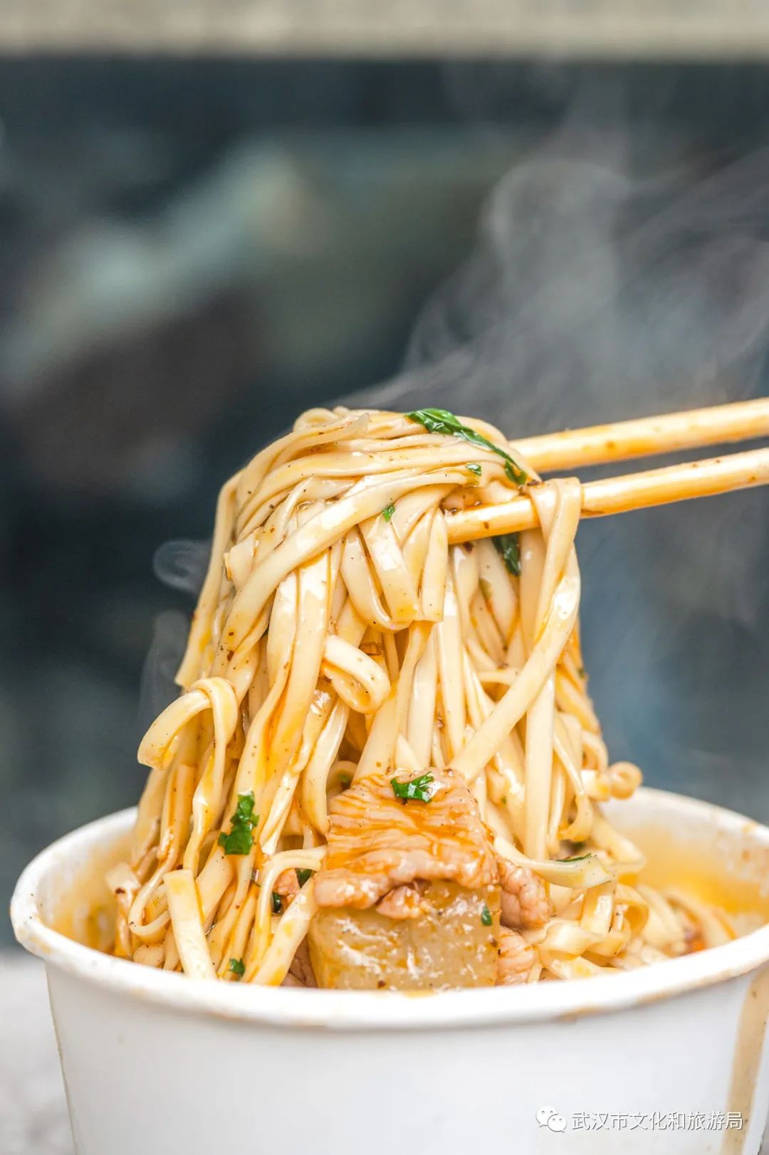 或者挑战武汉人的地道吃法:买好面端到门口站着吃(武汉人从小练就的技能)。嗦面间隙聊两句天,哈出嘶嘶热气诱惑过路人。