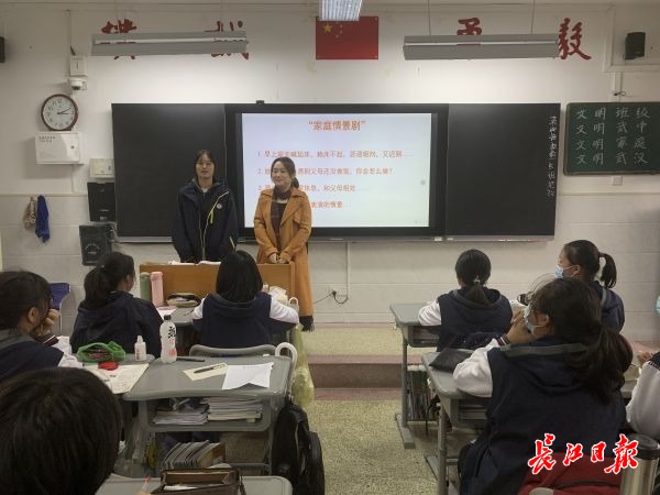 学生、家长代表同上一堂文明课,同台表演家庭情景剧。长江日报记者谭德磊 摄