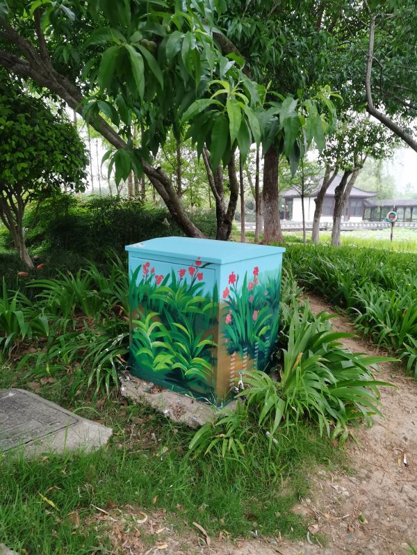不仅是公园竹林处的配电箱,在DE区的月季围栏、鹭园(D区)的酢浆草花海,公园里多处配电箱都换上新颜,有的繁花绽放、有的绿树成荫、有的湖水静谧……青、绿、黄的主色调,勾勒出公园美景,彩绘后的配电箱不仅外形美观,更与周围的景观特色相互融合,令人赏心悦目。