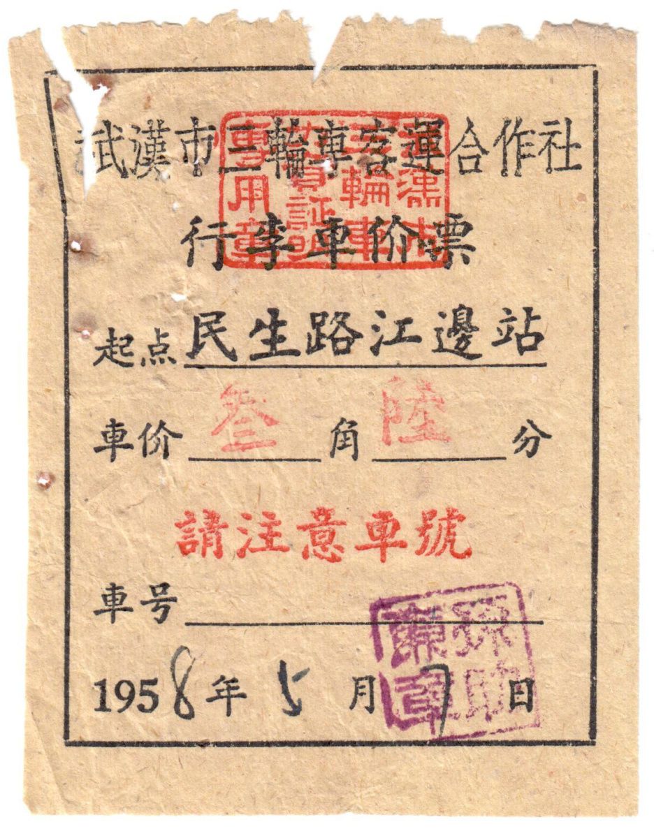 1958年武汉市三轮车客运合作社行李车价票