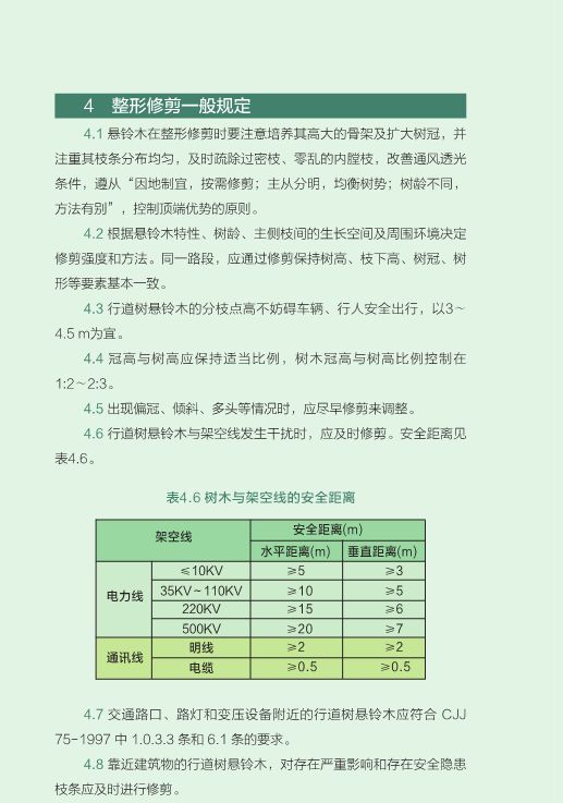 规范还对法桐的5种特殊环境下的修剪方法进行了详解,形成了一套全面、严谨、适宜的指导性文本。