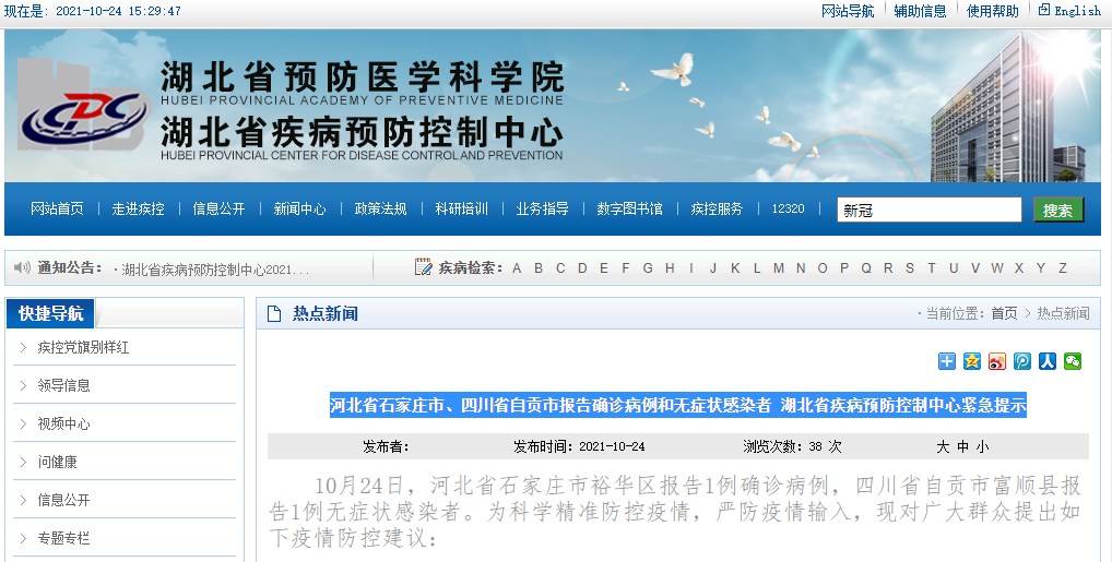 河北省石家庄市、四川省自贡市报告确诊病例和无症状感染者,湖北省疾病预防控制中心紧急提示