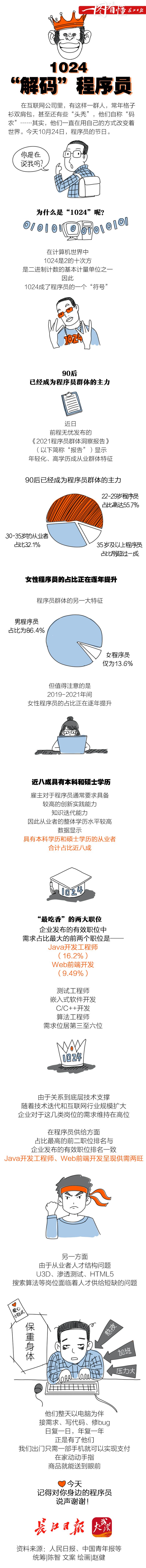 今天是程序员的节日,这两大职位“最吃香”…… ©原创 2021-10-24 18:45 陈智 赵健 0 资料来源:人民日报、中国青年报等 统筹|陈智 文案/绘画|赵健 【编辑:邓腊秀】 (作者:陈智 赵健)