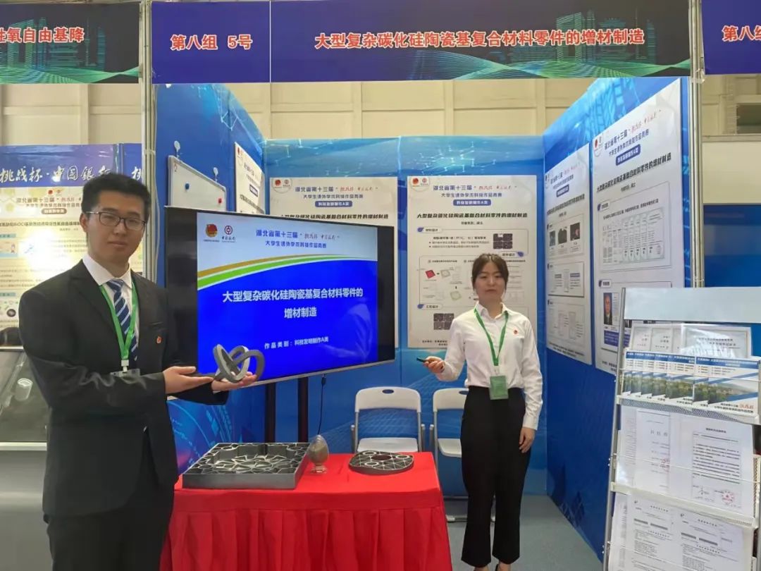 报送单位:材料学院指导老师:吴甲民、张李超、闫春泽团队成员:吴亚茹、王森林、杨源祺、王操、李萌、何逸宁、王志刚、赵一航项目介绍:碳化硅陶瓷基复合材料广泛应用于国家重大战略装备和航空航天等核心支柱产业,但大尺寸零件结构复杂、传统机加工难以制造。面对大型复杂碳化硅陶瓷零件整体制造难题,本团队在材料、软件、工艺方面做出突破,提出增材制造专用碳化硅陶瓷复合粉材的溶液包覆制备新方法;开发出面向海量数据、复杂模型的增材制造数据处理与工艺规划软件;提出增材制造+反应熔渗新工艺,最终实现了1.7m直径的复杂空间遥感卫星反射镜坯等零件的整体制造。本项目成果推动了大尺寸SiC陶瓷零件制造技术的发展,是打破发达国家在关键领域对我国技术封锁的重大突破。