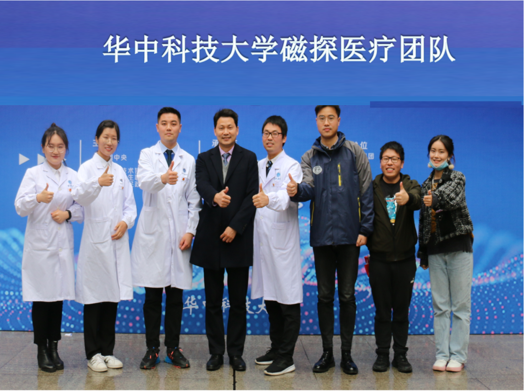 报送单位:附属协和医院、国家脉冲强磁场科学中心(筹)、武汉光电国家研究中心指导老师:蔡开琳、夏正才、欧阳君 团队成员:曹英豪、邓胜和、古俊楠、蔡文泰、毛富巍、薛一凡、刘长陆、张广豫、李振洲项目介绍:在微创化诊疗蓬勃发展的医疗新时代背景下,消化道肿瘤的检出趋于更早、更小,同时对于病灶的精确定位、精准切除的要求也变得越高。协和医院胃肠外科曹英豪博士作为项目负责人深入临床一线,发现临床问题,通过联合光电学院、强磁场中心组建医工交叉团队,深入研讨并进行科技攻关,根据传统术中定位方案的缺陷进行针对性突破,研发出了一套便捷、高精度的磁探测定位设备。设备基于前期动物实验、肠道标本实验的有效性、安全性认证,在多家医院进行了初步临床试用并取得良好的探测定位效果;未来临床中本设备将助力精准结直肠癌根治术,减少直肠癌造口患者,降低各种术后并发症。项目获得了专业领域陈孝平院士的认可及推荐;获得苏州高新区领军人才资助,预融资(200万)成立公司开展运营。