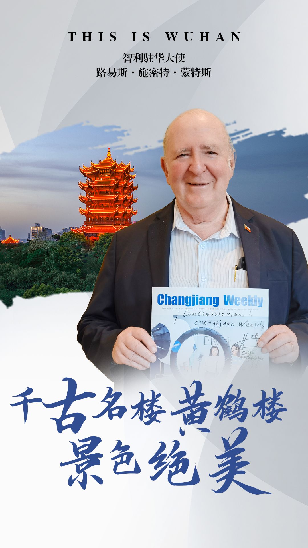 For Luis Schmidt Montes, Chile's ambassador to China, this trip to Wuhan was more like "realizing his dream of visiting the city as a tourist." "This time, I finally got the chance to visit the tower myself and enjoy the great view of the Yangtze River." In addition, the Chilean ambassador was so impressed by the scenes of Hankou in 1920s and 1930s reproduced on the Zhiyin cruise, "it was great to learn about the lives of the people along the Yangtze River in this way."