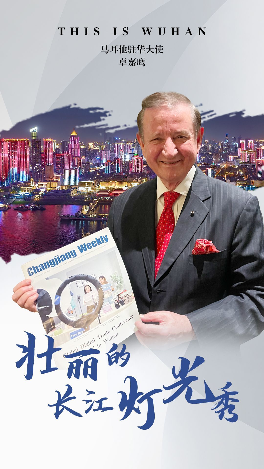 This is the second visit to Wuhan after fifteen years for John Aquilina, the ambassador of Malta to China. In his eyes, Wuhan has profound historical and cultural heritage and has developed tremendously in these years. He is pleased that the city is building up its reputation as a tourist city, as well. The Yangtze River light show was also a unique spectacular for him. He said, "I don't think that anywhere else in the world that a beautiful thing could be made on both sides of the river."