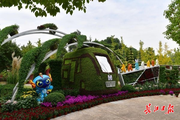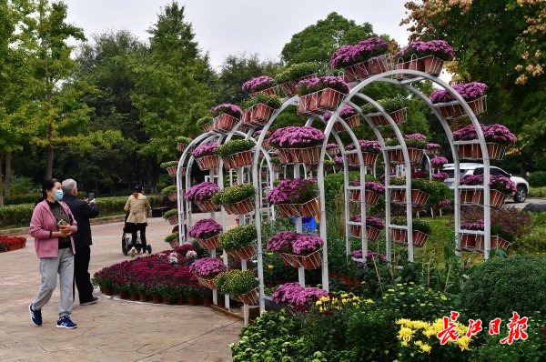 长江日报大武汉客户端10月26日讯 10月26日,沙湖公园B区,武汉市第38届金秋菊展沙湖公园展区布展已近完毕,多个大型主题扎景均已完工,工作人员正在进行摆花、养护等收尾工作。临沙湖大道的公园入口处,武汉地铁列车和隧道、鹦鹉洲长江大桥造型的大型菊花扎景让人耳目一新。湖岸边,“赤都武汉”“抗战武汉”“英雄武汉”“建设武汉”四组主题扎景一字排开,将武汉的英雄历史与菊花展相融合。据了解,本届菊展于28日正式开幕,而菊花全面盛开仍需再等10天左右。(记者李永刚 摄影报道)