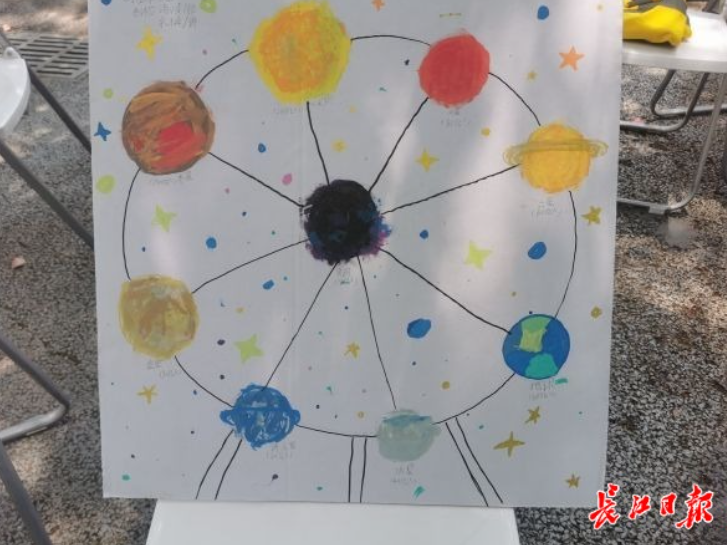 如果让你造一个摩天轮,你希望它是什么样的?青少年们用手绘的形式画出了梦想中的摩天轮。“我们的摩天轮,是由太阳系八大行星构成的。”鄱阳街小学四年级肖子轩描述了他们的摩天轮,“最上边的是太阳,左右分别是土星、水星、火星、地球和海王星等,而中间有个大黑洞。”在他们的画作里,“行星车厢”的颜色都映射了真实的行星的样子,比如:蔚蓝和碧绿相间的地球、拥有棕色星环的土星。肖子轩的梦想是成为一名航天员,“希望未来能像坐摩天轮一样,进入太空,遍访太阳系行星”。
