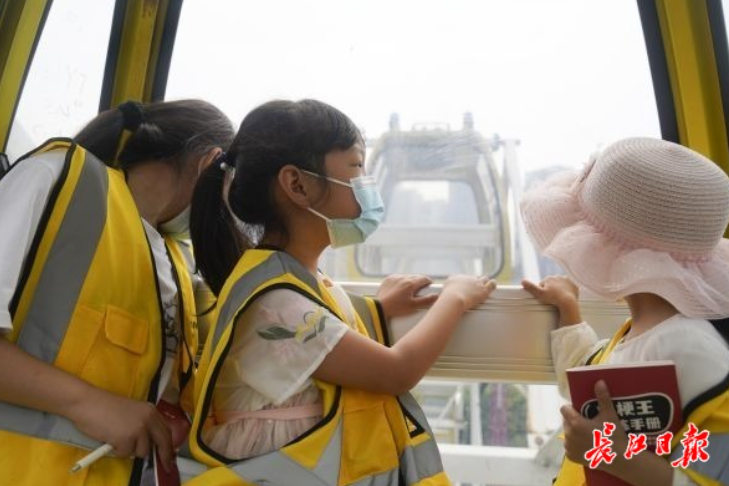 “看,我们到最高点了。”坐在摩天轮一节车厢里的肖芷夏对表妹周沐晓说,姐妹俩看向窗外,发现了一片碧绿的体育场。回到地面,在中山展览馆门口,小可向青少年提问:“刚刚坐完摩天轮,大家还记得它长什么样子吗?”青少年们不约而同地说出了几个关键词:黄色车厢、白色骨架。