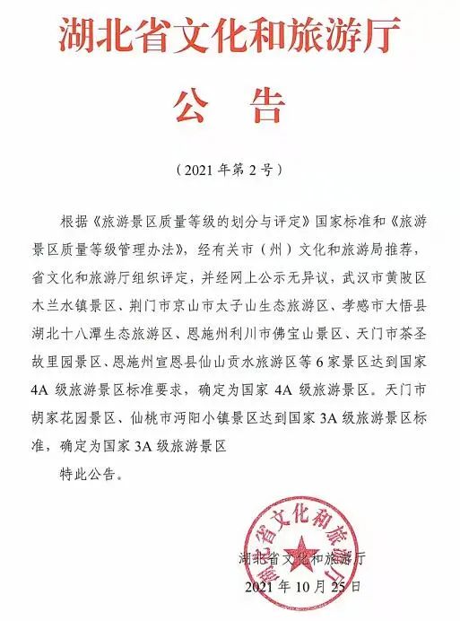 截至目前,孝感市4A级景区达到8家,3A级景区17家,其中4A级景区分别是双峰山旅游度假区、汤池温泉旅游景区、观音湖生态文化旅游度假区、天紫湖生态度假区、白兆山李白文化旅游区、金卉庄园、中原军区旧址景区、湖北十八潭生态旅游区。