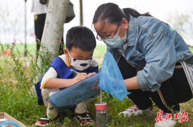 长江日报大武汉客户端5月22日讯(记者詹丽 通讯员刘天昌)你知道世界上有多少种昆虫吗?5月22日是国际生物多样性日,十余组亲子家庭齐聚沙湖公园鹭园(D区)生态岛,在自然导师刘如达、黄俊铭、李祎鸣、刘宇澳(华中农业大学绿色协会)的带领下,深入昆虫世界,探讨昆虫与生物多样性的关系。