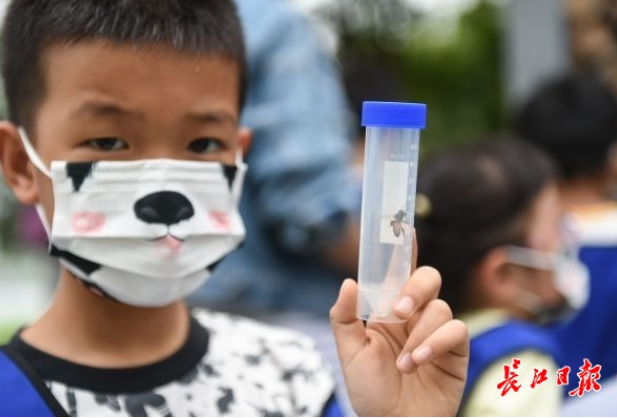 5岁半的曾姁然在父亲的帮助下,捕捉到了弓背蚁、蜜蜂、叶蜂幼虫,他说:“蚂蚁有像嘴一样的钳子,会用触角和同伴交流,看起来像‘握手’,虽然我还是有点害怕,但我们不能伤害昆虫,它们是自然中的一部分。”